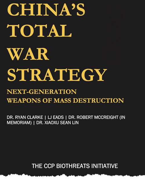 The book China’s Total War Strategy: Next-Generation Weapons of Mass Destruction – published by the CCP BioThreats Initiative and authored by Dr. Ryan Clarke, LJ Eads, Dr. Robert McCreight, and Dr. Xiaoxu Sean Lin – outlines how the CCP has been pursuing an aggressive, multifaceted “total war” against the U.S. that leverages next-generation weapons, including synthetic narcotics (e.g., fentanyl and cannabinoids), bioweapons (e.g., Covid-19), psychological manipulation and influence (e.g., TikTok), and a broad arsenal of irregular warfare tools.