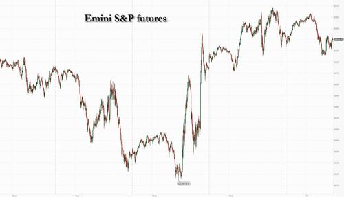 US stock futures are lower with tech stocks lagging as Intel plunged 14% after the chipmaker warned it was struggling with manufacturing problems leading to poor Q1 guidance. As of 8:00am ET, S&P and Nasdaq futures are down 0.1% but off session lows (and well off session highs), paring losses as Nvidia shares gained after Bloomberg reported Chinese officials have told the country’s largest tech firms they can prepare orders for Nvidia’s H200 AI chips. Mag 7 are mixed with NVDA leading gains after Chinese officials were said to have told the country’s largest tech firms, including Alibaba Group Holding Ltd., they can prepare orders for Nvidia Corp.’s H200 AI chips. Bond yields are mostly unchanged; USD is flat. Japan’s top currency official declined to comment on whether the government stepped into the market after USD/JPY plunged over 150 pips in just a few minutes. The pair swiftly bounced and is now around 158.30 having topped 159 during the Bank of Japan press conference after Governor Ueda didn’t offer any clear signal that an early rate hike was possible. The pound sits atop the G-10 FX pile, rising 0.2% against the greenback after PMI topped estimates and hawkish remarks from BOE’s. Commodities are mostly higher led by Oil (+1.5%); both base metals and precious metals are higher with silver trading just under $100/oz. The key macro focus today were global PMIs.
