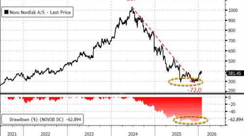 Novo Nordisk shares in Europe appear to be forming a base after a 5.5-month bottoming process, following a mid-2024 peak and a subsequent 71% collapse.