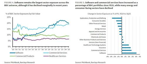 “Software is the largest sector exposure for BDCs, at around 20% of portfolios, making the industry particularly sensitive to the recent decline in software equity and credit valuations,” Barclays analysts including Peter Troisi wrote in a note available to pro subs.