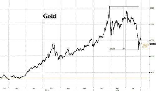 Today we learned the identity of at least one of the sellers: Turkey’s central bank sold and swapped about 60 tons of gold, worth more than $8 billion, or more than 10% of the country’s total holdings, in two weeks after the start of the war in Iran, adding to the sharp downward pressure on bullion prices.